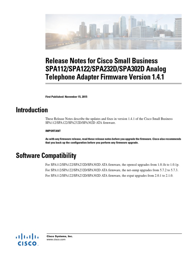 Release Notes for SPA Series Analog Telephone Adapters Firmware Version |